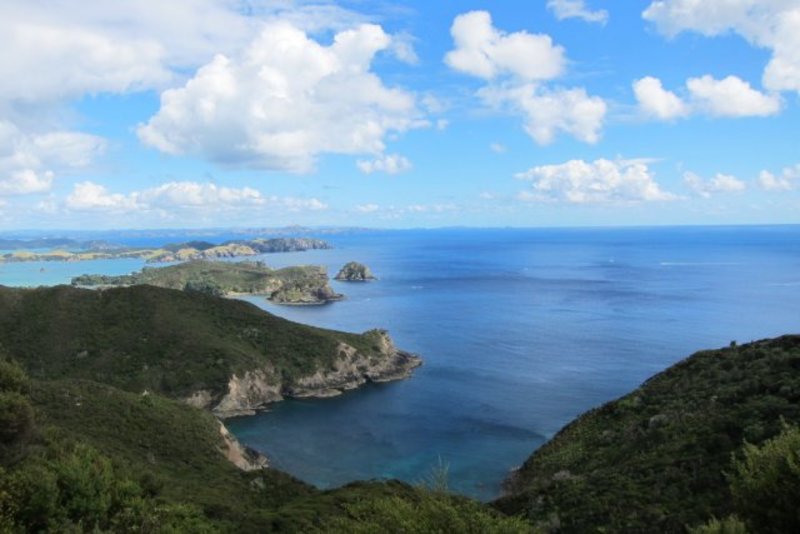 Saturday we did the track from the road end all the way to Cape Brett. Took us ~8.5h including breaks to enjoy the beautiful Bay of Islands and a side track to Deep Water cove where we had a swim in the bay. Very refreshing - it was still hot but the summer is slowly retreating down here ;( Shortly before the Cape Brett lighthouse we were welcomed with some spectacular cliffs and views across some islands, one of the nicest placest we've seen here so far! The hut itself is actually very close to the famous 'hole in the rock', a touristy place at the very outside of the Bay of Islands that Steffi and I visited 6 years ago - being the normal tourists we were back then ;)
